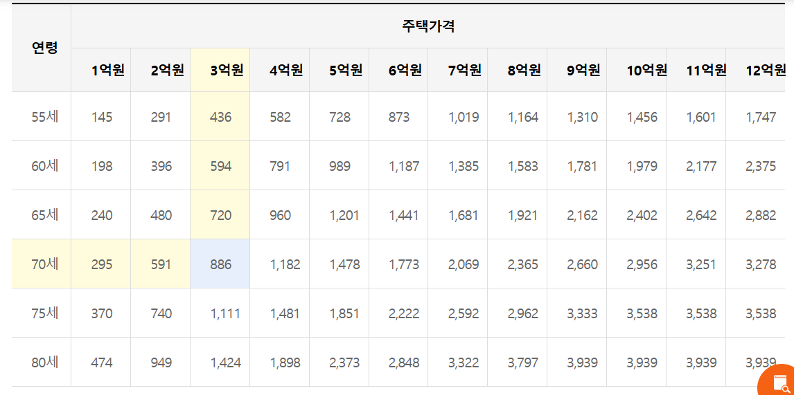 70세인 사람이 주택 공시가격이 12억원 이하인 아파트로 주택연금에 가입하면, 현재 최대 월 330만원을 받을 수 있다.