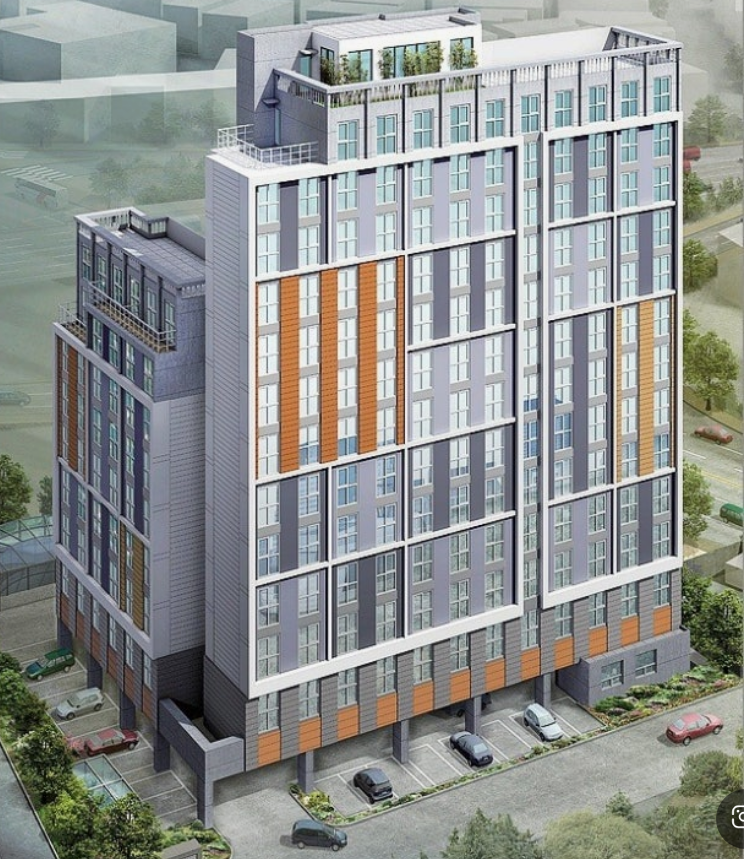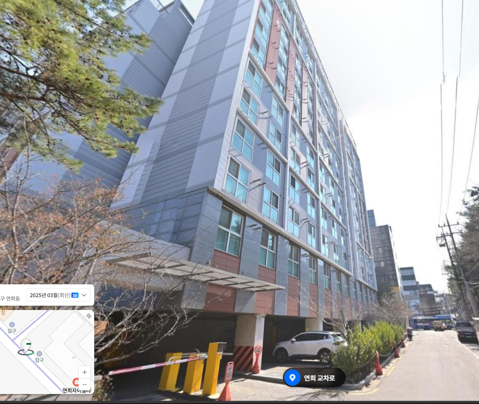 1층을 주차장 확보를 위해 필로티 구조로 만들었다. 화재에 취약하다. 아마 완강기가 필수적으로 설치되어 있을 것 같다.