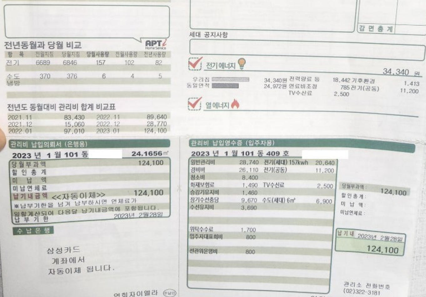 가스 요금이 없는 것으로 봐서 별도로 나오는 것 같네요.