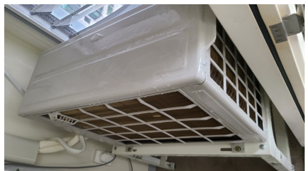 창 밖으로 연통이 나온 것으로 봐서 도시가스 보일러 난방 방식이다.